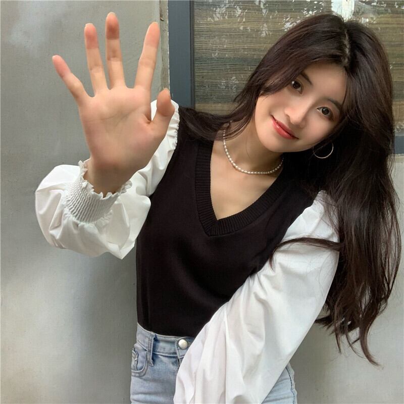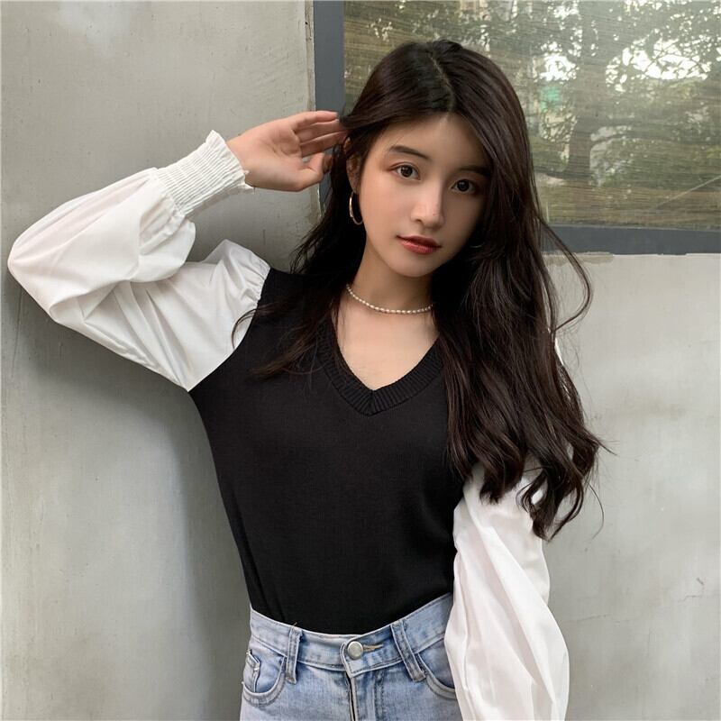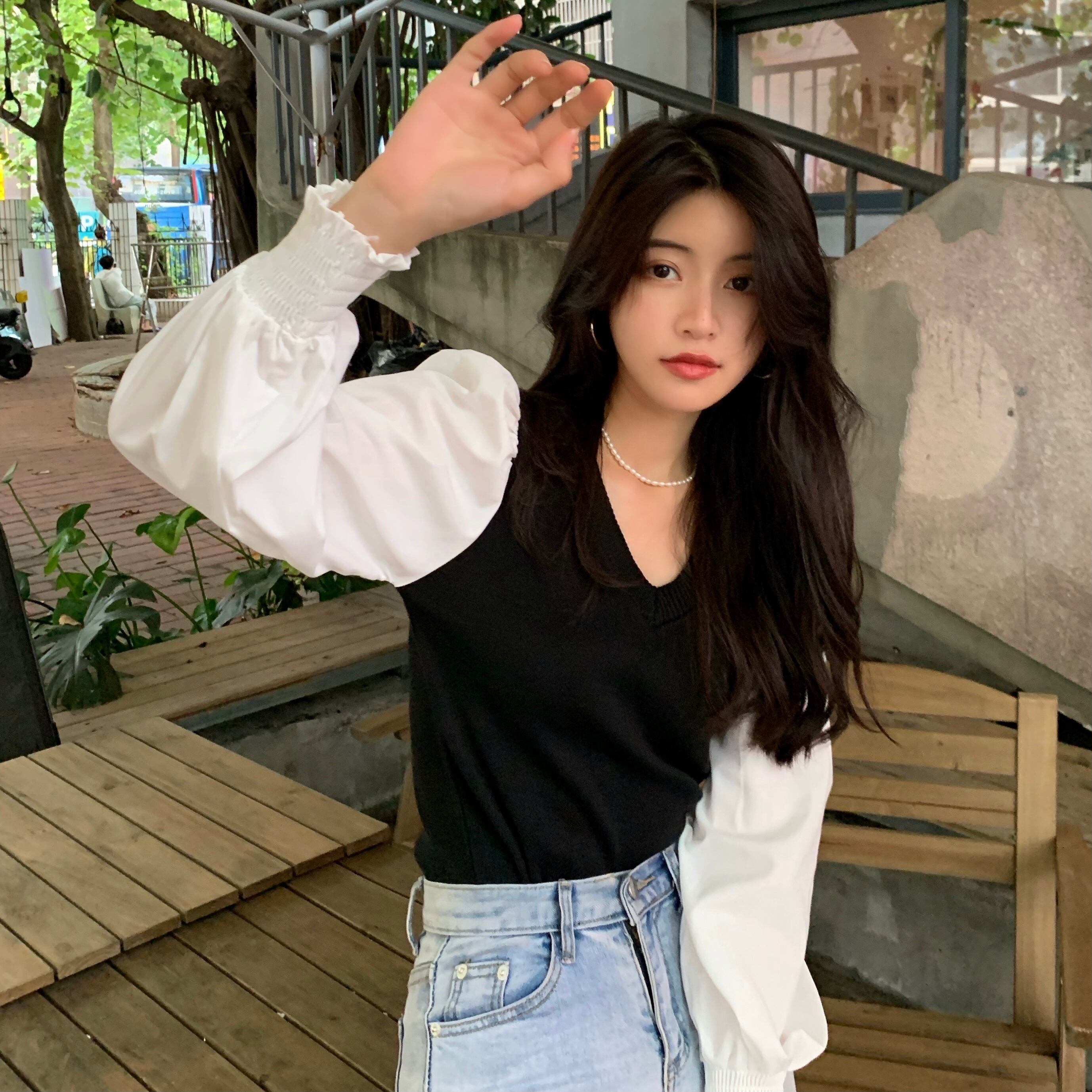 スタンダードカラーセーター スプリング秋物薄手スタイルブラックウィンター ロング レトロ 春物 オータム 冬物 ステッチ 長袖 コーデ Marchs48404892725