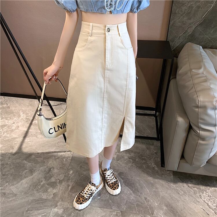 韓国ファッションハイウェストウェストスカート 夏服薄手サイドスリットルーズAライン 夏物 スタイル ウエスト コーデ Marchs422079947
