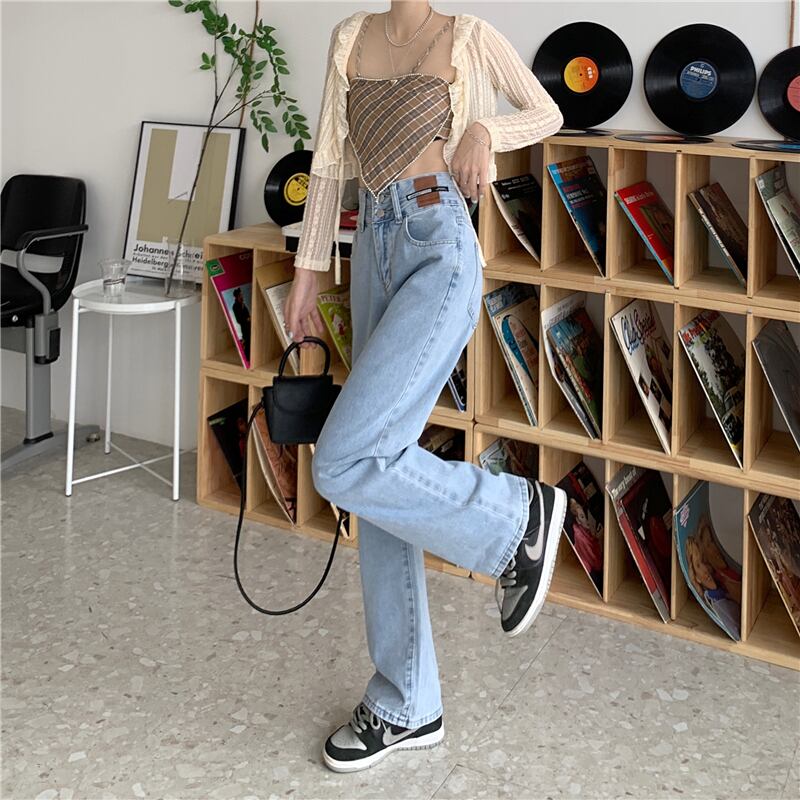ハイウェストウェストジーンズ スプリング秋物韓国ファッションスリムワイドレッグパンツ 大きめサイズ 春物 オータム ワイドパンツ スタイル ウエスト コーデ marchs6754075651337