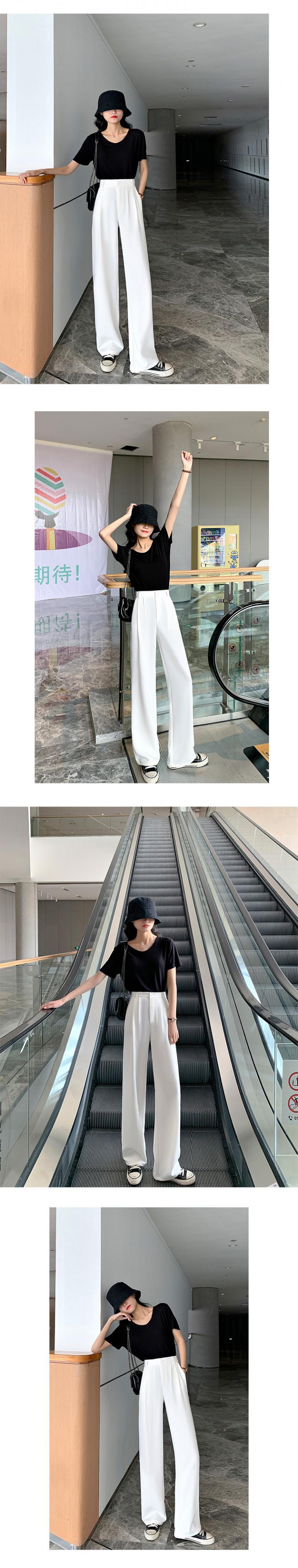 ワイドレッグパンツ レディースハイウェストウェスト夏服スタイル薄手グレールーズ 夏物 ワイドパンツ ウエスト コーデ Marchs57248993434
