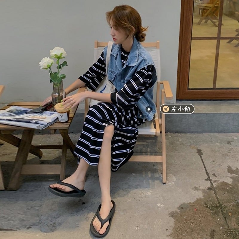 スタイルストライプスリムワンピースレディース夏服カジュアルルーズロングTシャツスカート 夏物 コーデ marchs6771222844280