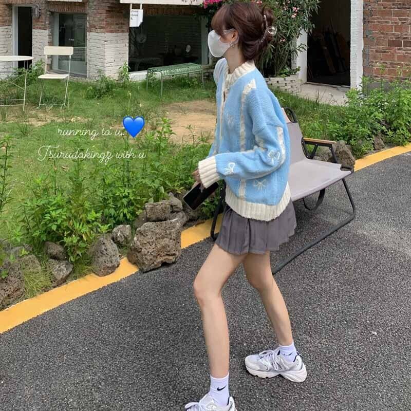 セーター コート スプリング秋物ブルーニットカーディガン 大人ガーリー スウィート キュート カジュアル 春物 オータム コーデ marchs6745441386086