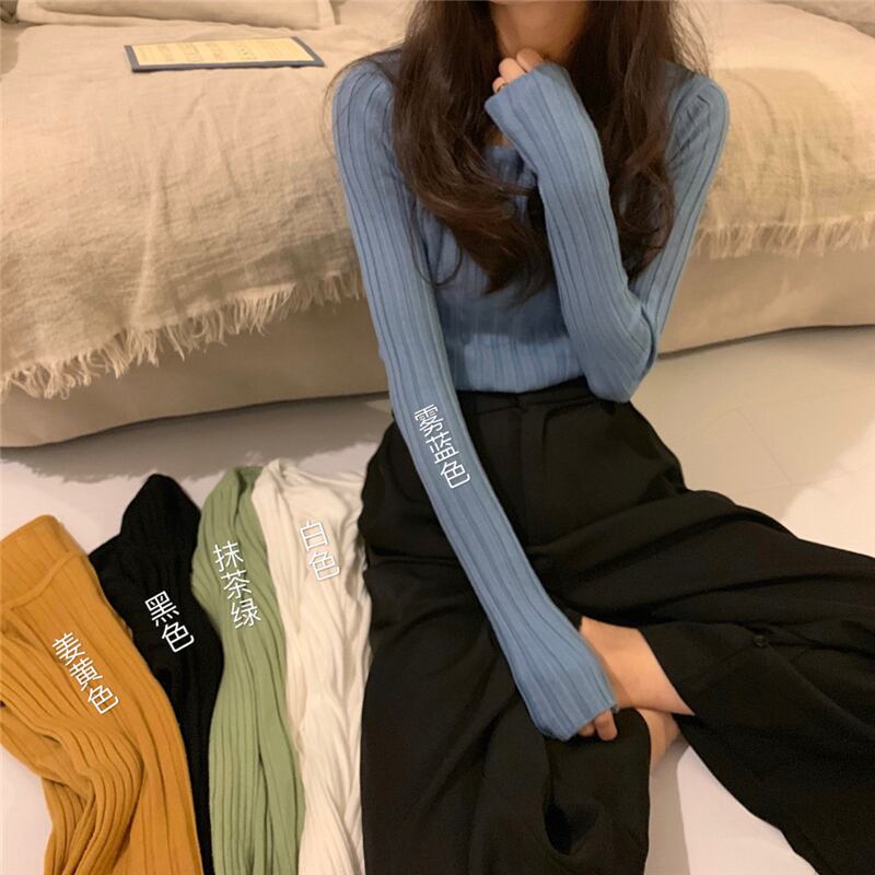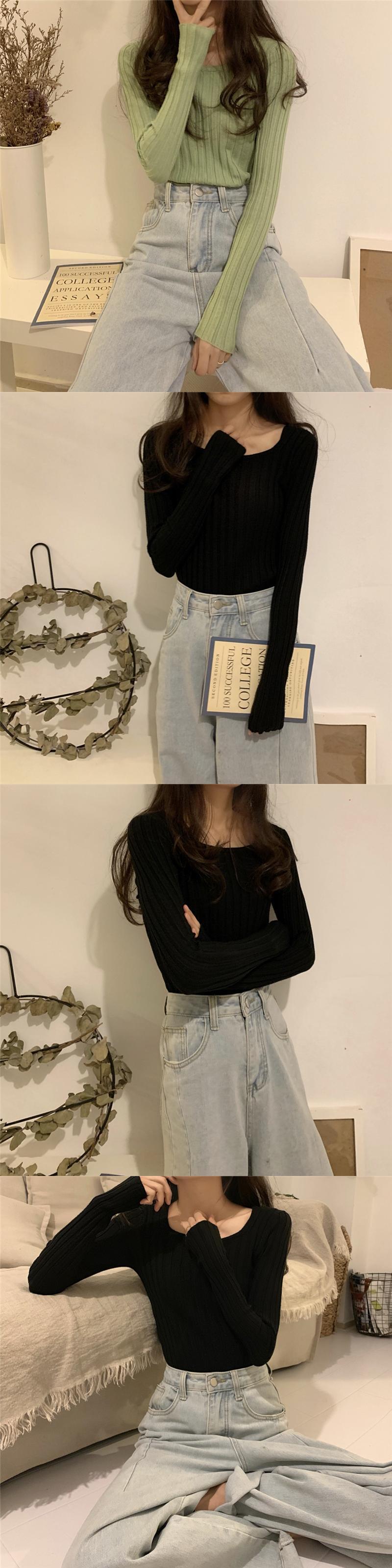 スタイルブラウス セーター ニットゆったりシャツ スリムラウンドネックホワイトブラック Oネック スクウェア コーデ Marchs18134054027