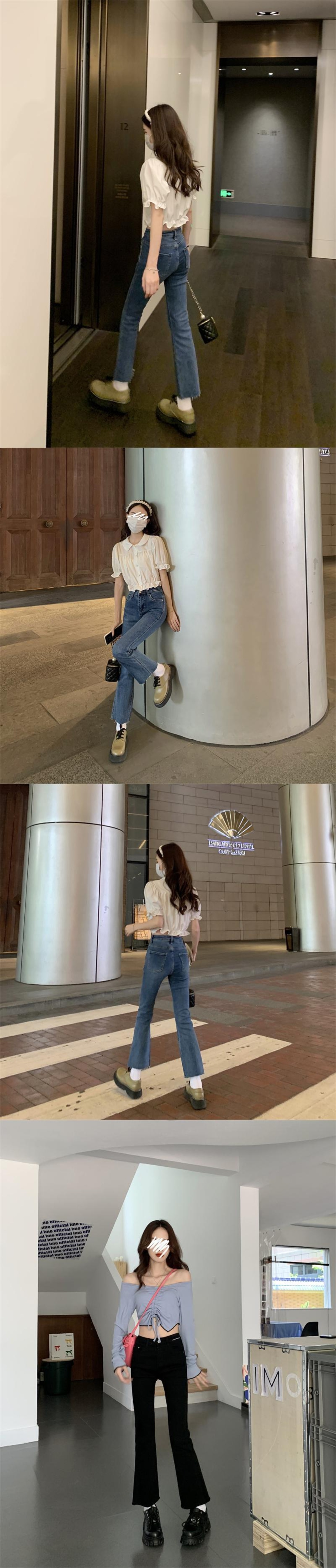ジーンズ スプリング秋物韓国ファッションショートハイウェストパンツ レッド 春物 オータム スタイル ウエスト コーデ Marchs20049128538