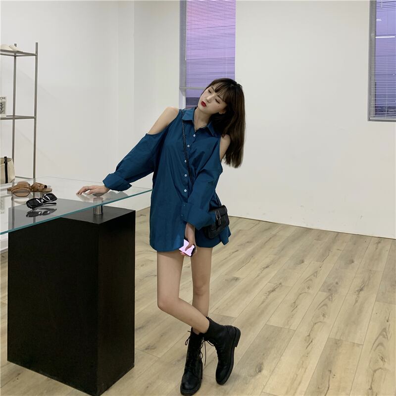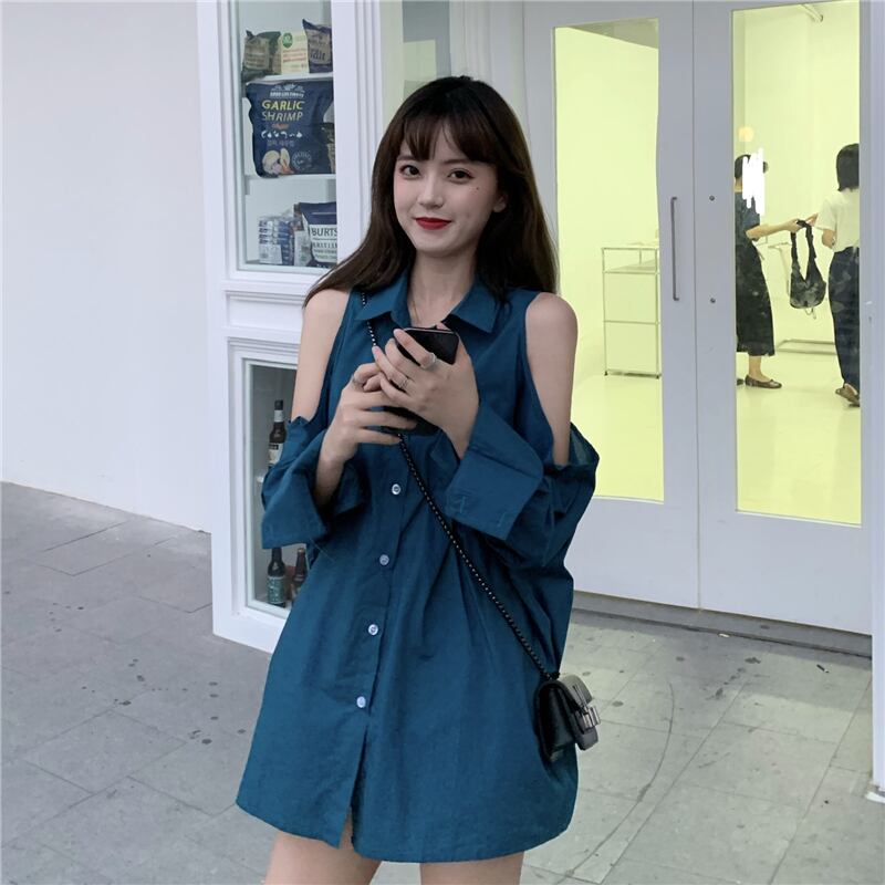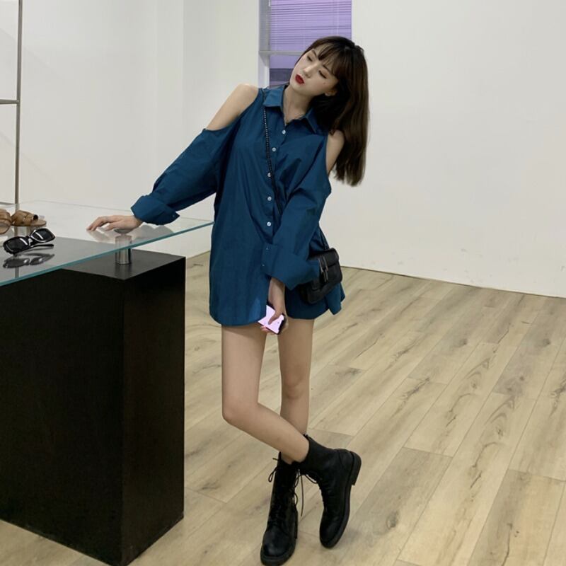 シャツ レディースルーズスタンダードスタイルストラップレス秋物薄手 ロング レトロ オータム 長袖 コーデ Marchs73408828406