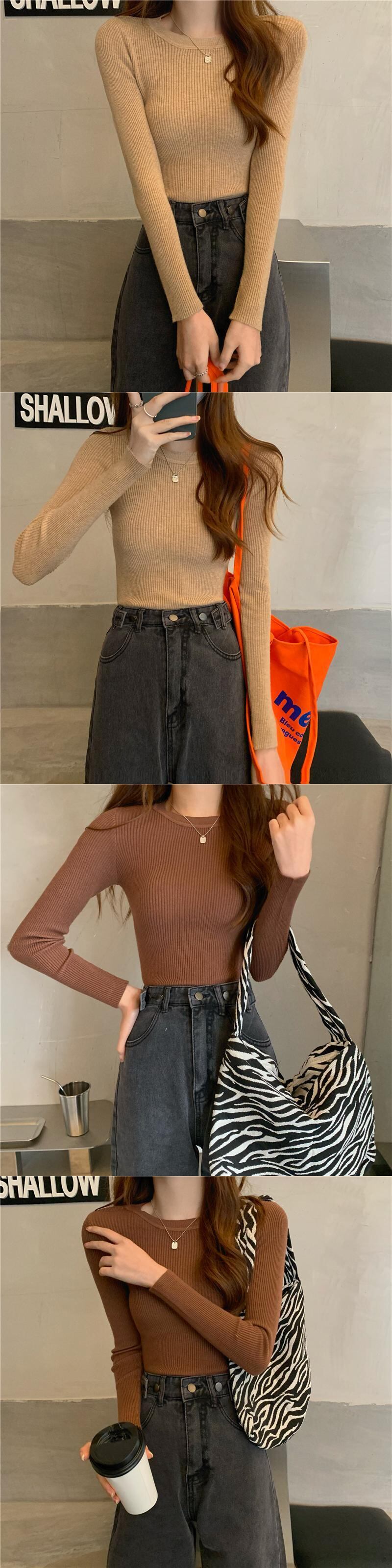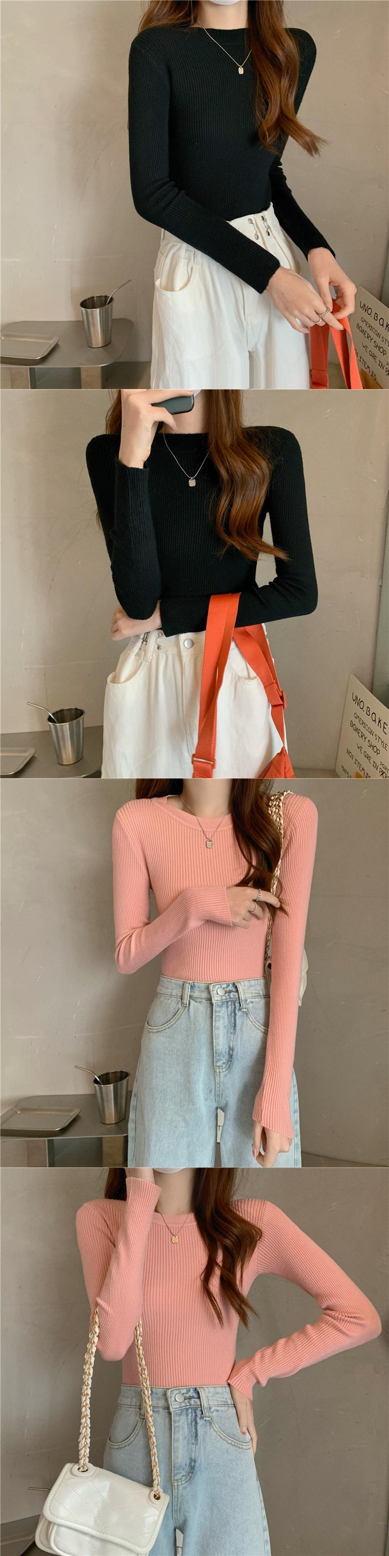 レディース秋物韓国ファッションラウンドネックプルオーバー スリムニットゆったりシャツ トップス ロング オータム Oネック スタイル 長袖 コーデ Marchs25503043472