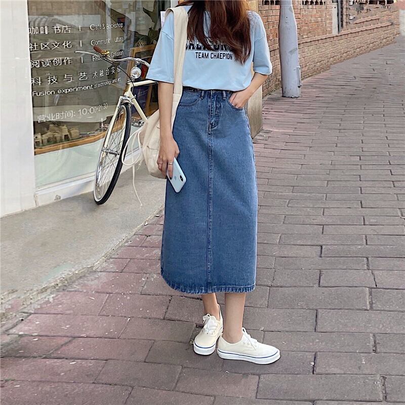 ブルースカート レディース夏服スタンダードAラインハイウェストウェスト レトロ 夏物 ウエスト ミドル丈 コーデ Marchs24403432737