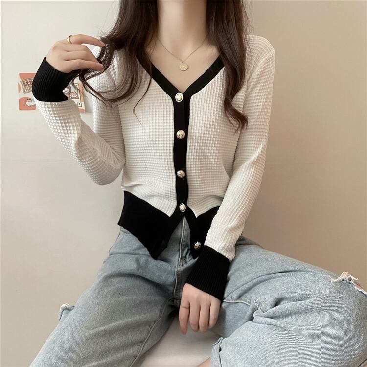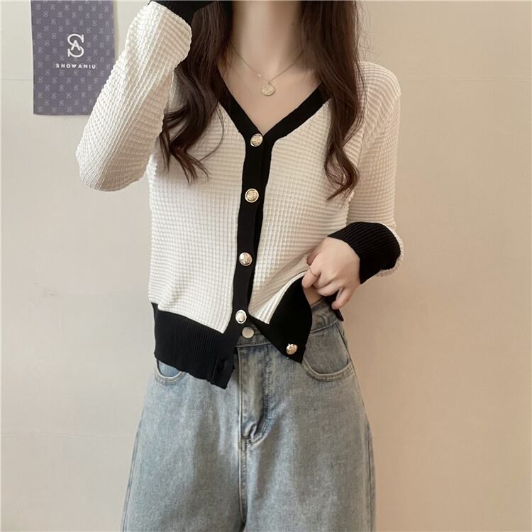 ブラックセーター ジャケット カーディガンスプリング秋物カラーVネック ロング 春物 オータム 長袖 コーデ Marchs9373188340