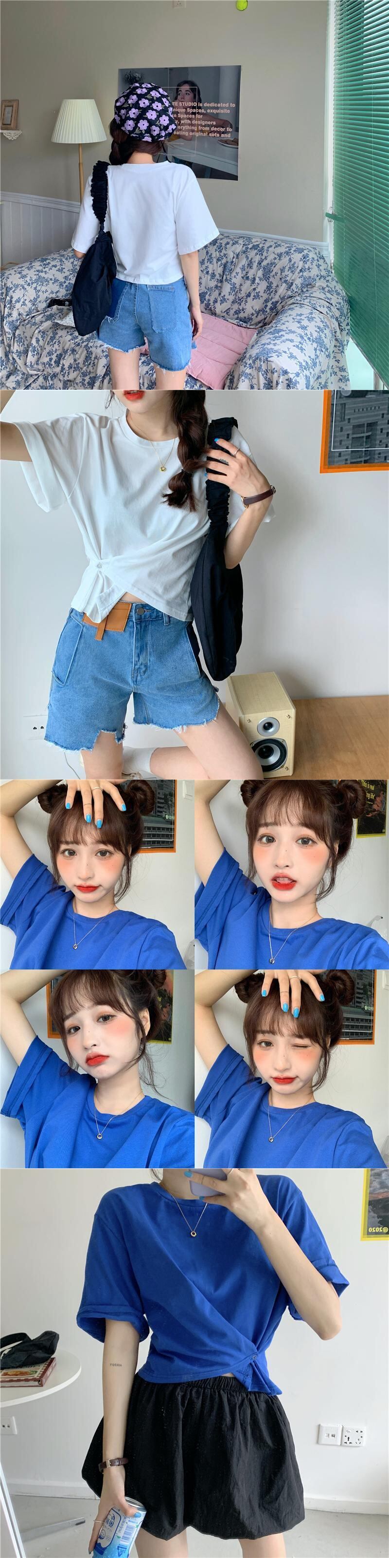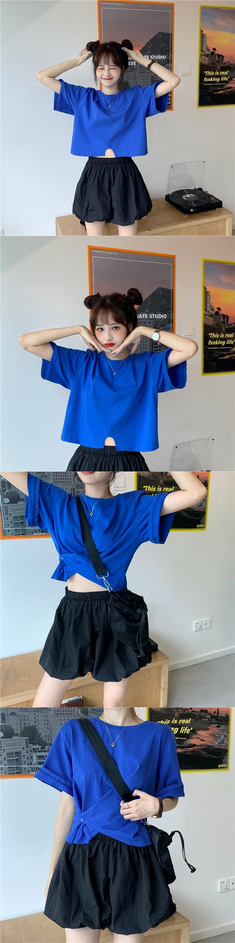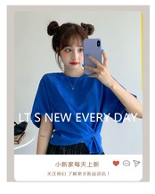 ブルーショートTシャツルーズハイウェストソリッド カラートップス 夏服 夏物 ソリッドカラー サファイア サファイヤ 碧玉 青玉 ウエスト コーデ Marchs95960186150