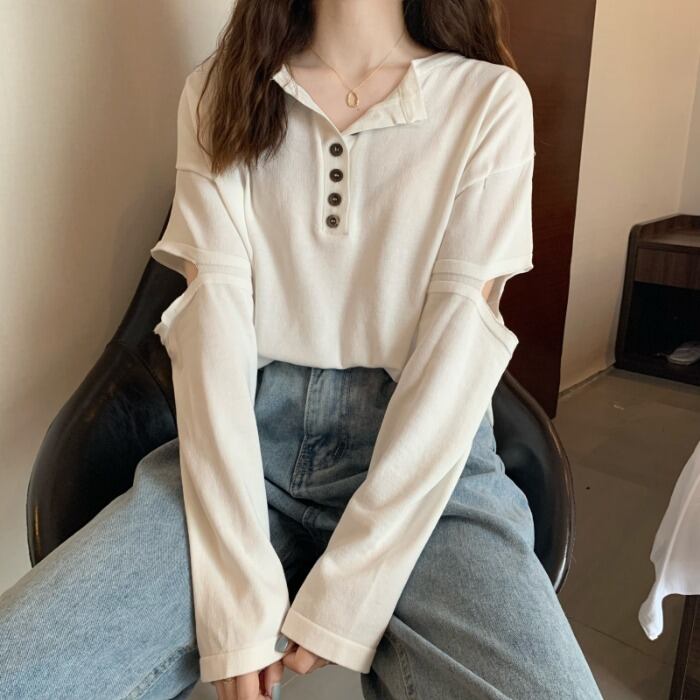 ルーズTシャツレディース秋物 ロング オータム 長袖 コーデ Marchs81485991052