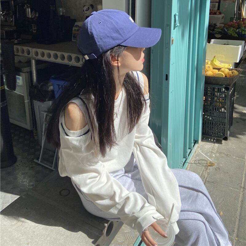 ホワイトスタイルブラウス 韓国ファッションルーズセーター レディーススプリング秋物薄手 ロング 春物 オータム オフショルダー ボーイズ 長袖 コーデ Marchs64444445181