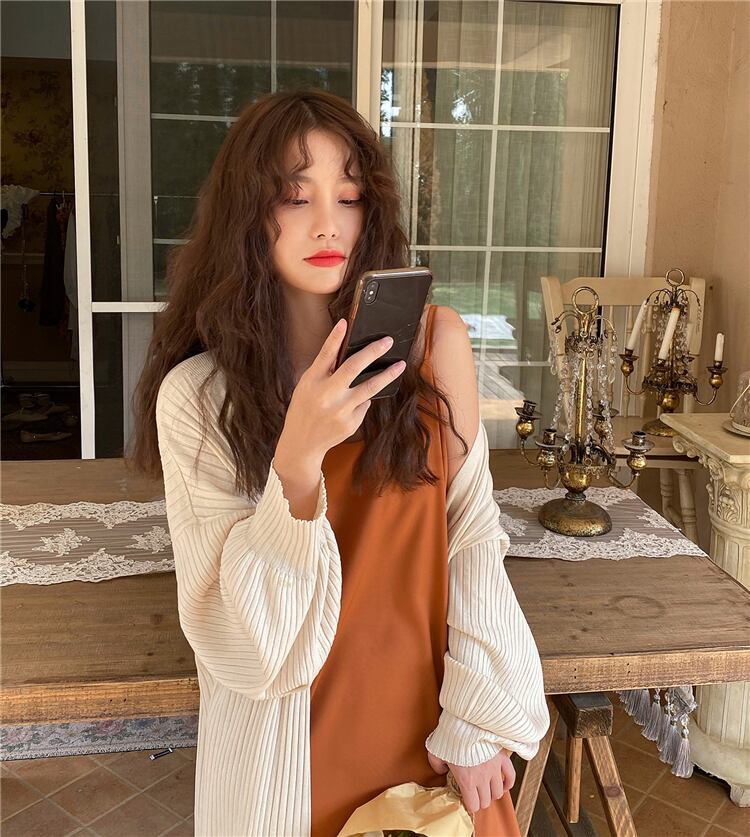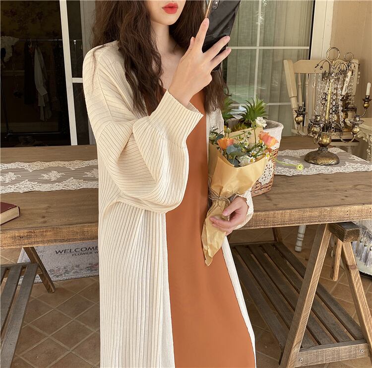 薄手ニットカーディガンスプリング夏服ルーズジャケット ロング 春物 夏物 シルク 長袖 ミドル丈 コーデ Marchs86545216238