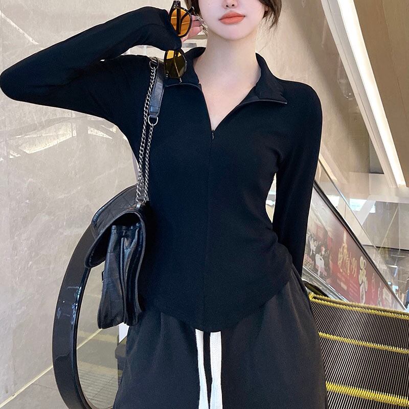 スプリング秋物ジッパーカラーニットカーディガンゆったりシャツ トップス ロング 春物 オータム 長袖 コーデ marchs6719169322696