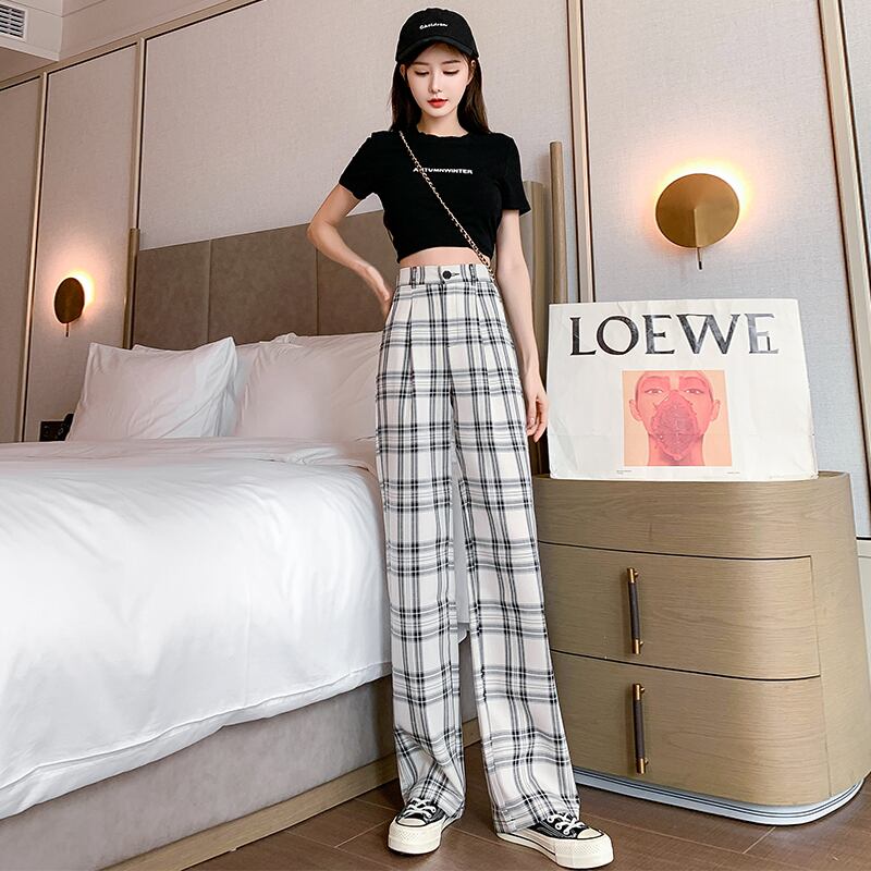 格子柄パンツ 夏服ルーズウェストブラックホワイト薄手 夏物 ウエスト コーデ Marchs99853684247