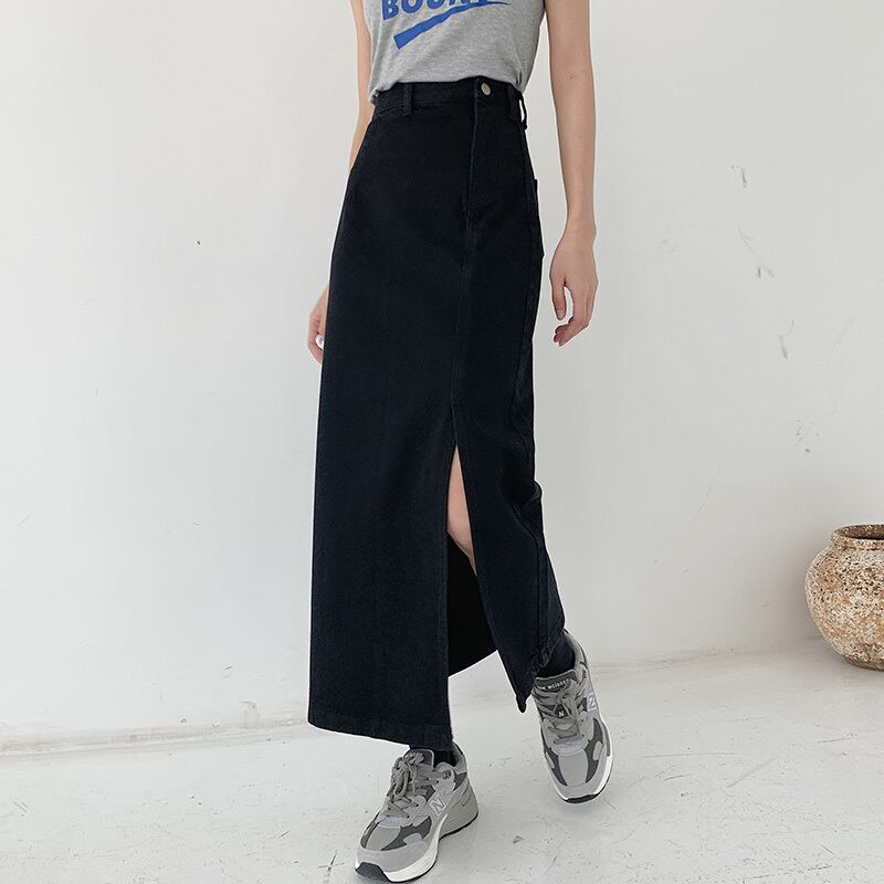 ブラックサイドスリットスカート レディーススプリング夏服ルーズハイウェストウェストAライン 春物 夏物 ウエスト ミドル丈 コーデ Marchs96091258978