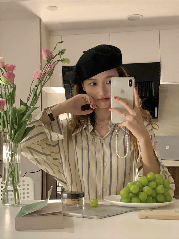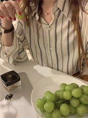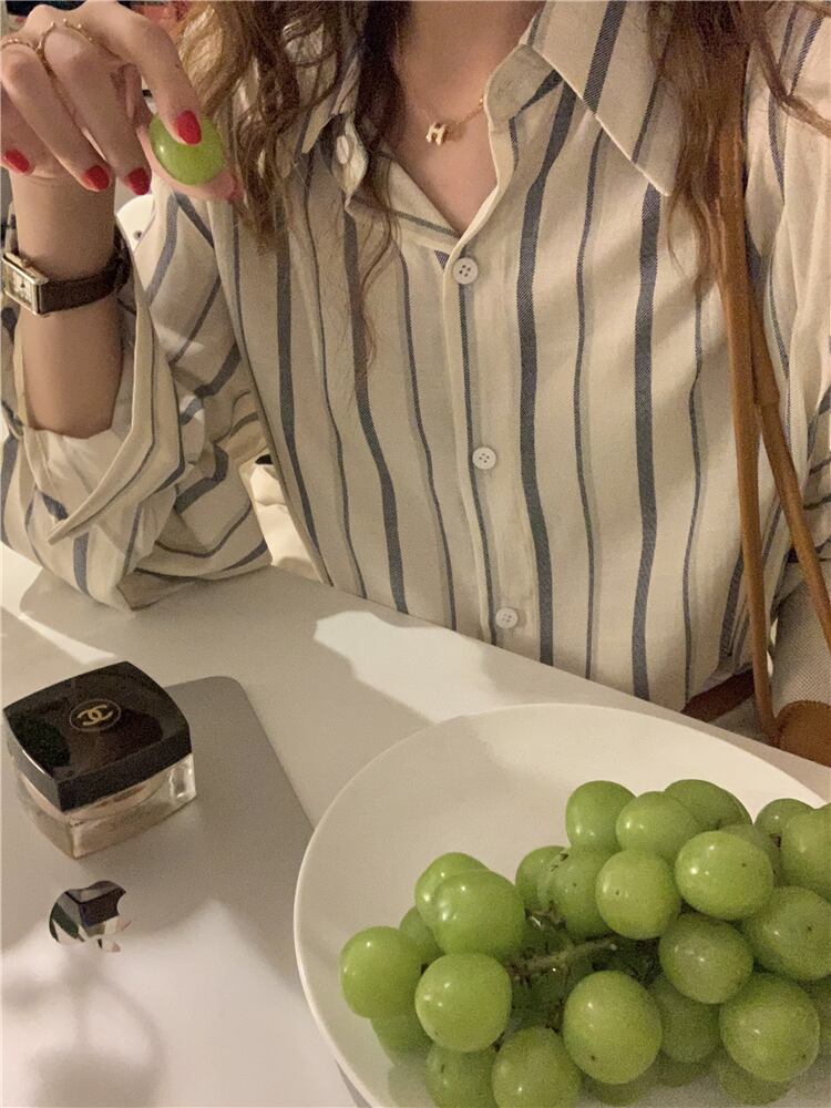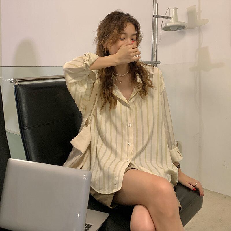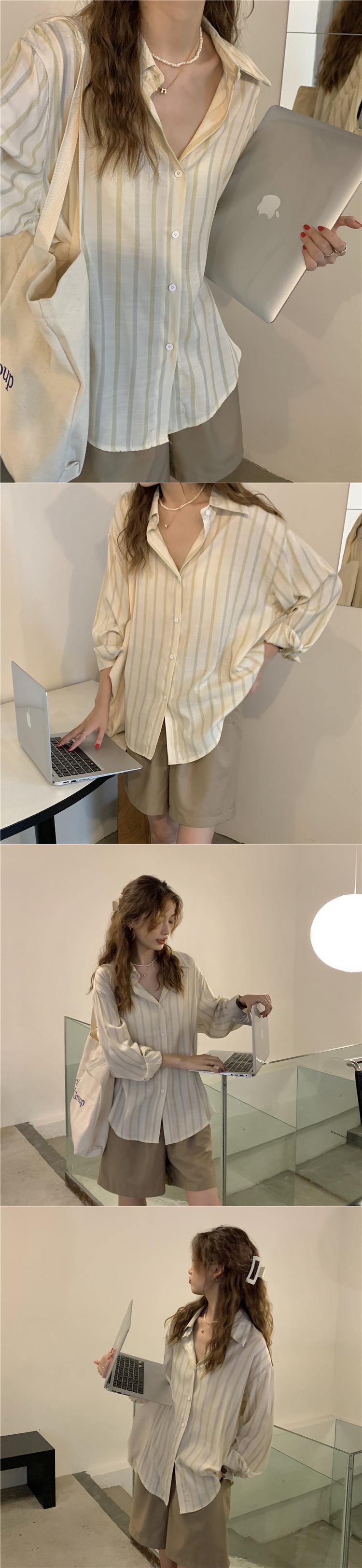 スタンダードストライプシャツ レディーススプリング秋物ルーズカジュアルカラー ロング レトロ 春物 オータム 長袖 コーデ Marchs41607628073