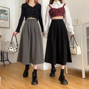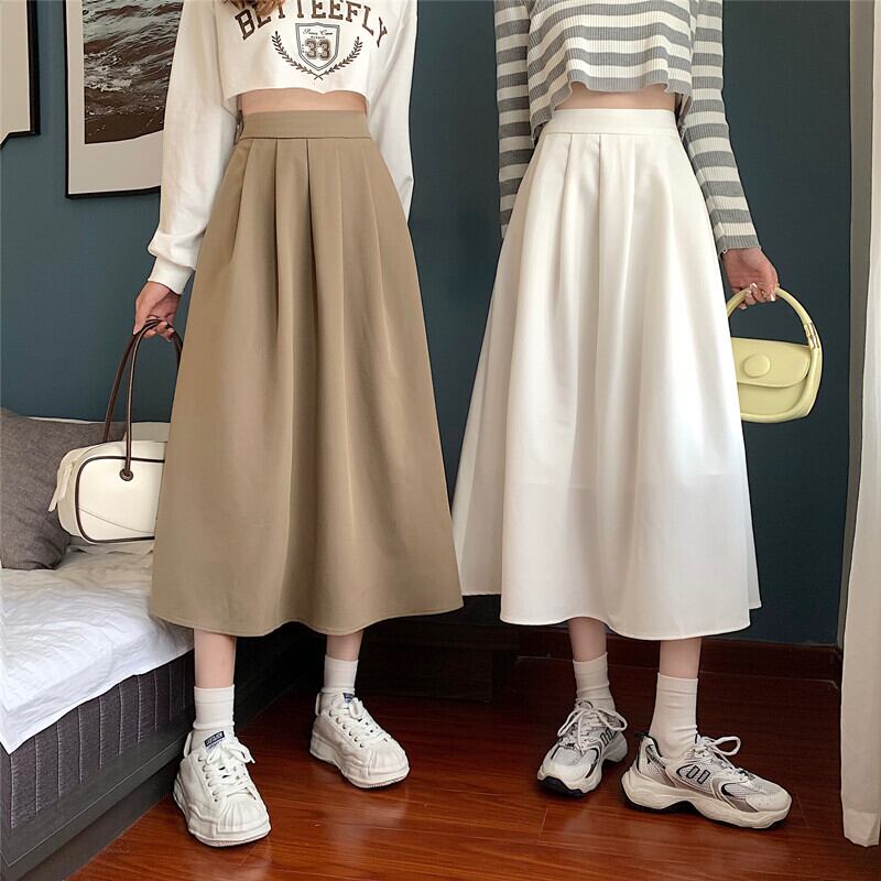 ホワイトAラインスプリング秋物プリーツ薄手 ハイウェスト 春物 オータム スカート ウエスト ミドル丈 コーデ Marchs2434388183