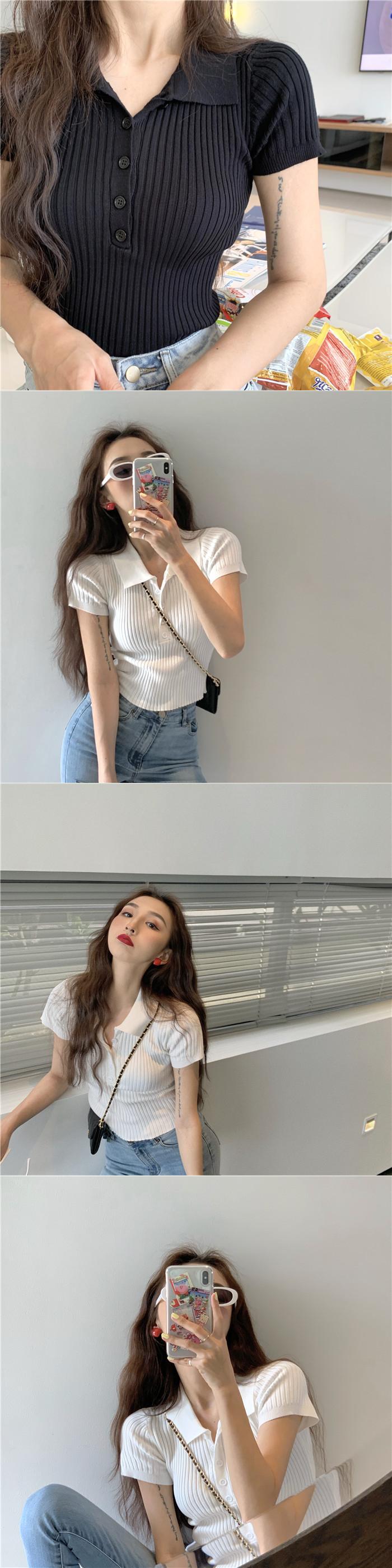 ホワイトニットセーター スリムカラーシャツ ハイウェストショートTシャツトップス スタイル シルク ウエスト コーデ Marchs79456874896
