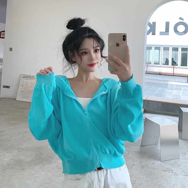 ニットカーディガンジャケット スプリング秋物薄手フードショートブラウス トップス 春物 オータム コーデ marchs6791690702166