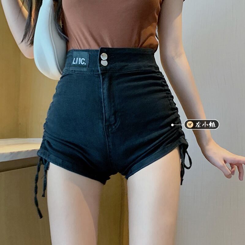 ギャザーショーツ 夏服薄手ハイウェストウェストブラックAラインパンツ 大きめサイズ 夏物 ウエスト コーデ marchs6710373005732