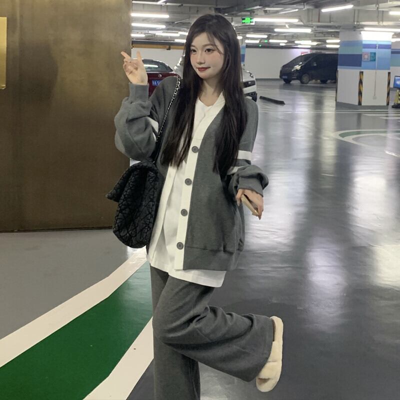 色:カーキカーディガン,カーキトラックパンツ,グレーのカーディガン,グレートラックパンツ