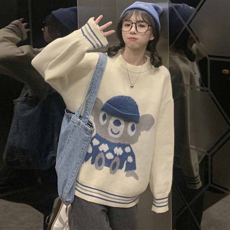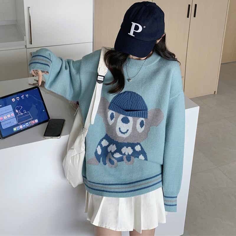 ブルーセーター スプリング秋物ルーズ韓国ファッションスタイルニットトップス 春物 オータム コーデ marchs679397555172