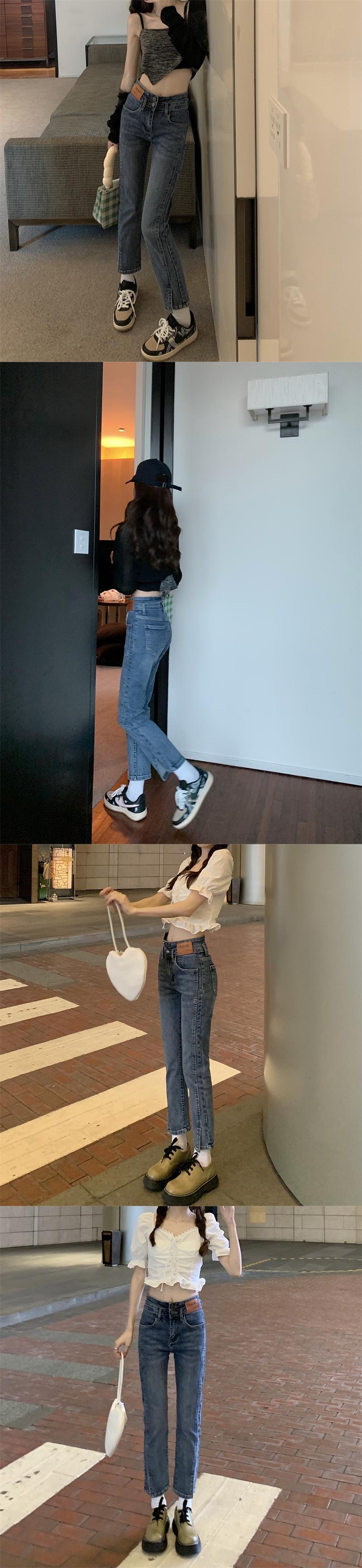 ブラックジーンズ 秋物ハイウェスト薄手スリムクロップド オータム ウエスト コーデ Marchs77350842495