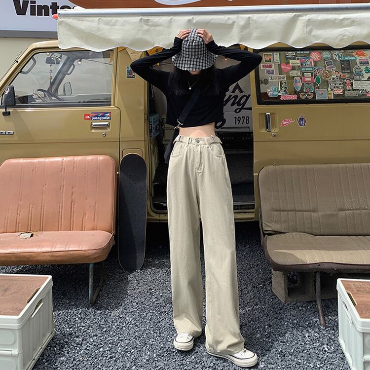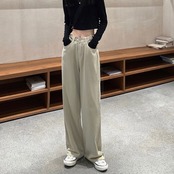 ハイウェストウェストワイドレッグパンツ 秋物スタイル韓国ファッションカジュアルスタンダード レトロ オータム ワイドパンツ ボーイズ ウエスト コーデ Marchs62628632798