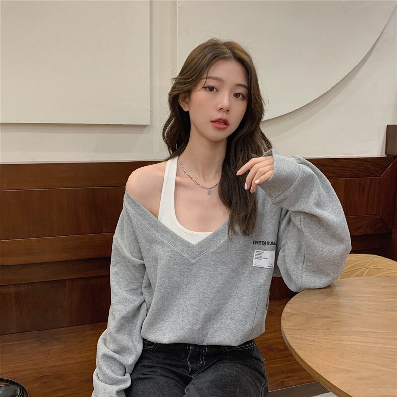 秋物ゆったりシャツ トップス 韓国ファッション薄手セーター ロング オータム 長袖 コーデ Marchs13734952469