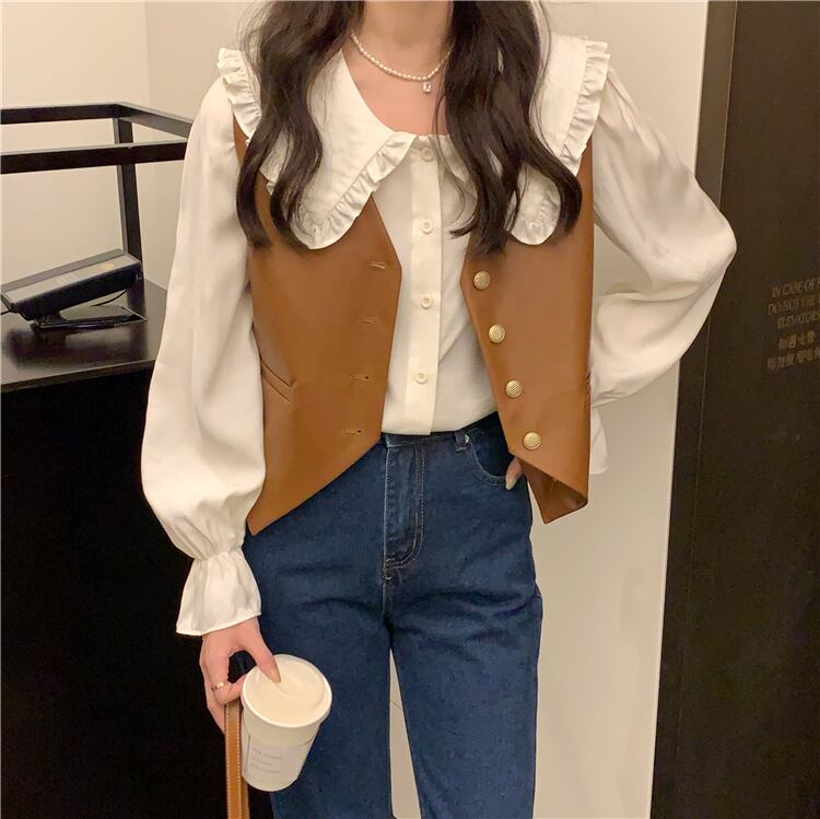 色:ブラウンベスト,アプリコットシャツ
