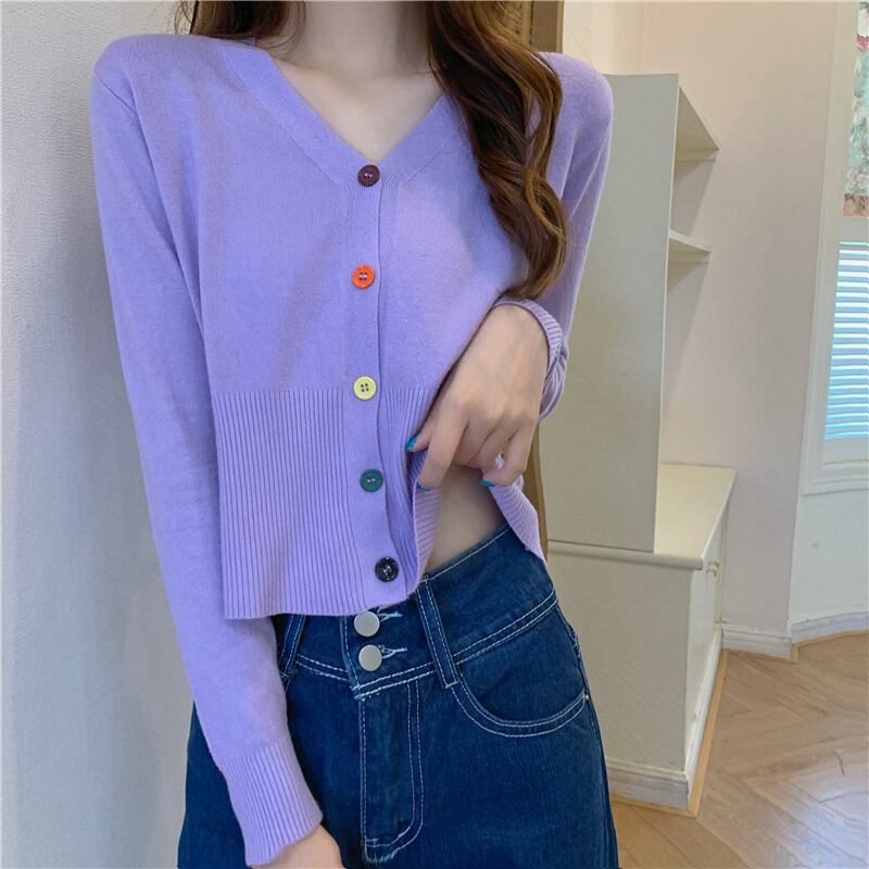 バックルスタイルスタンダードニットカーディガンジャケット レディース薄手ショートトップス レトロ オータム 秋物 コーデ Marchs5755424784