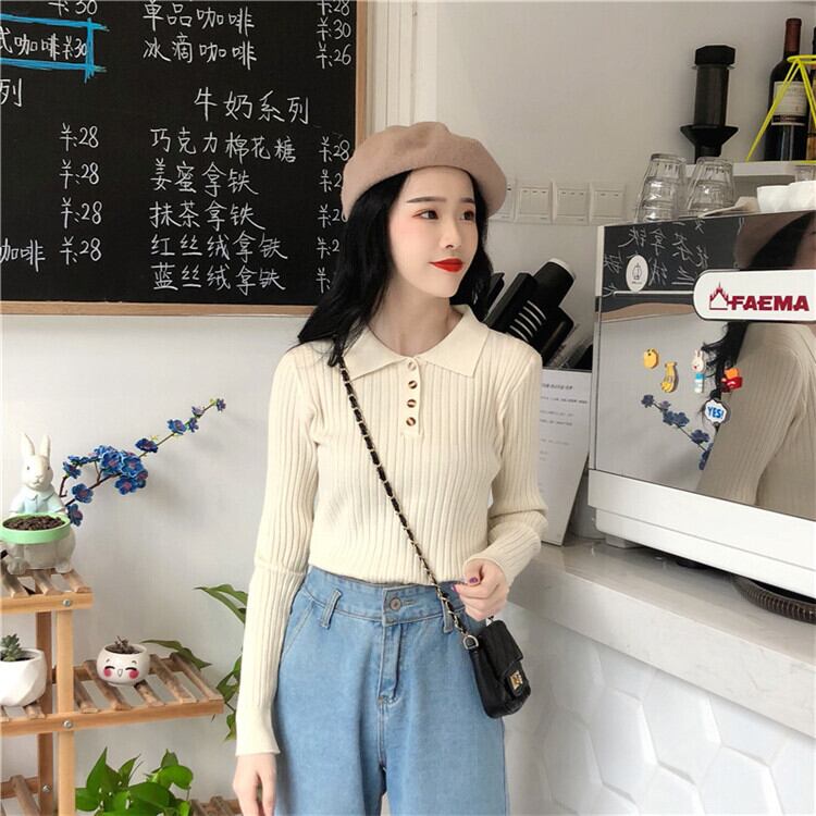 秋物ボタンセーター ニット レディース韓国ファッションスリム薄手カラートップス オータム コーデ Marchs21956087298