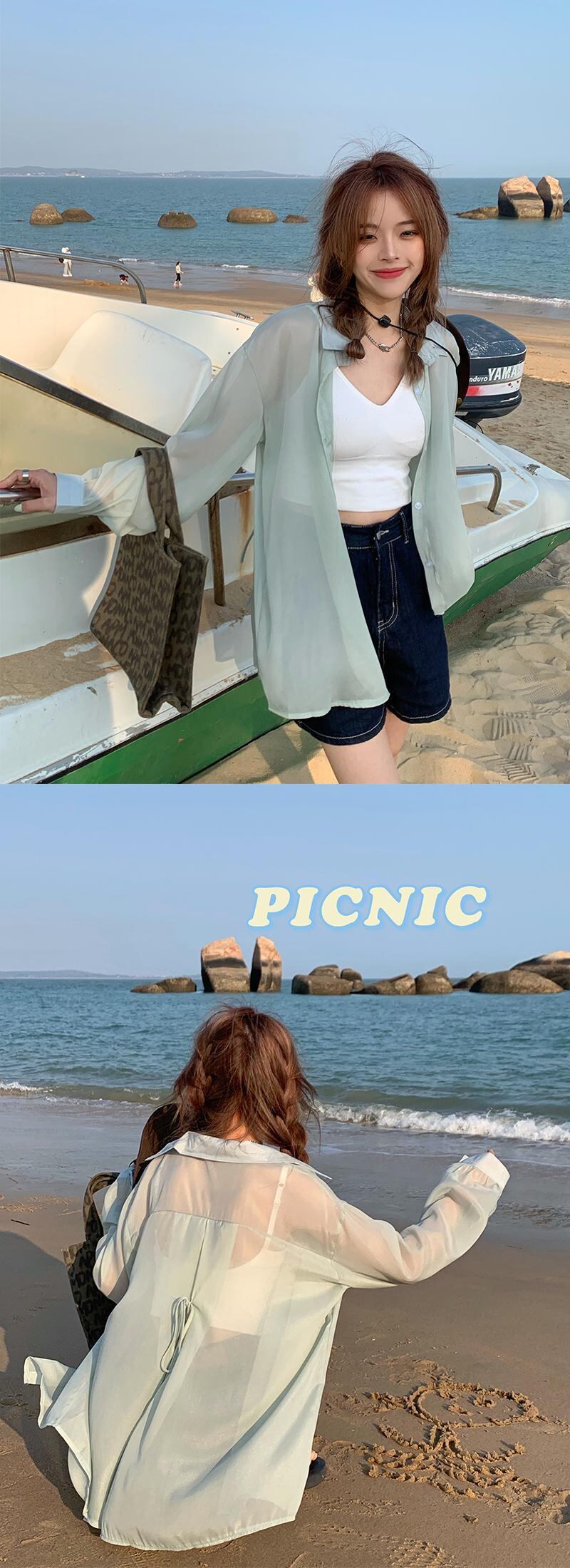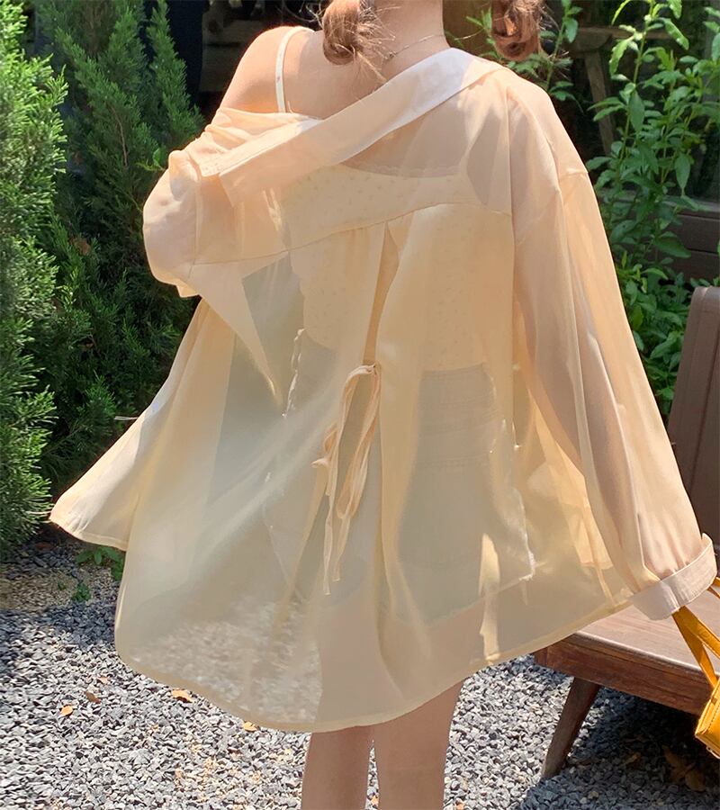 カラーブラウス ジャケット バックスリットレースシャツ レディース薄手夏服 ロング 夏物 長袖 コーデ Marchs77561996592
