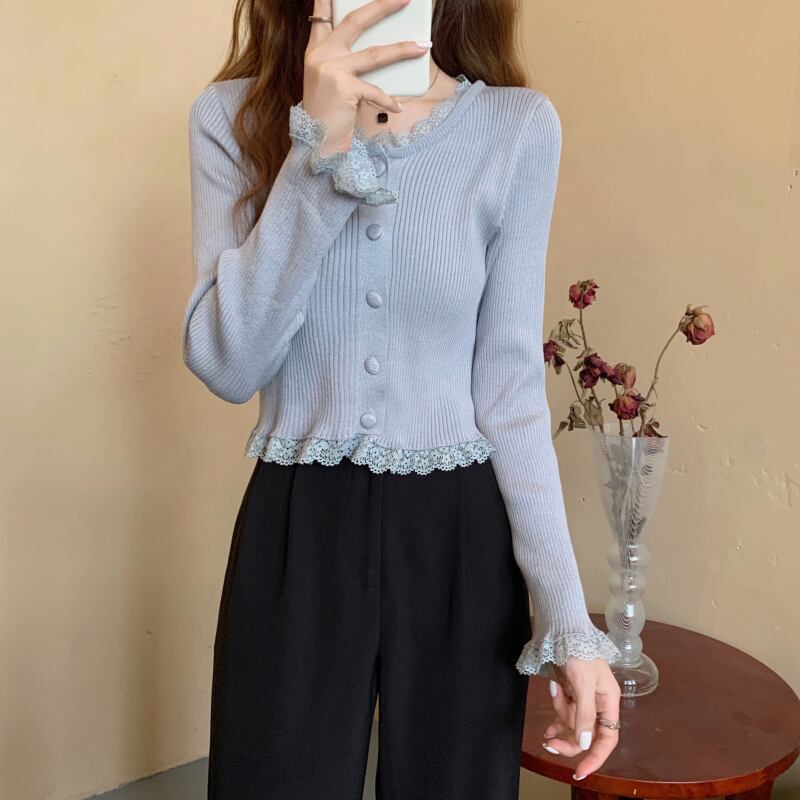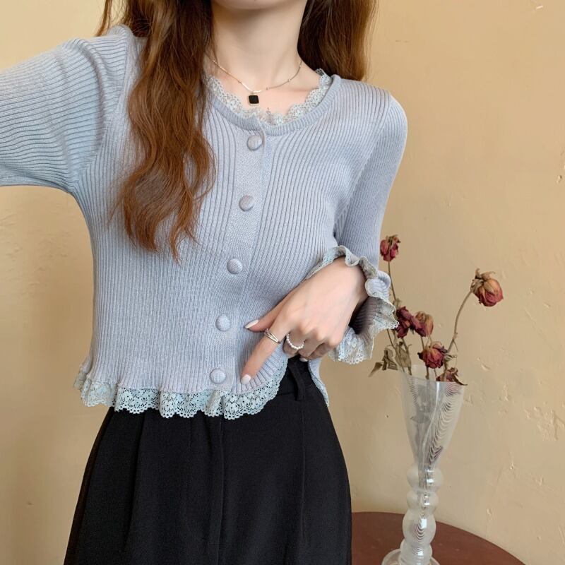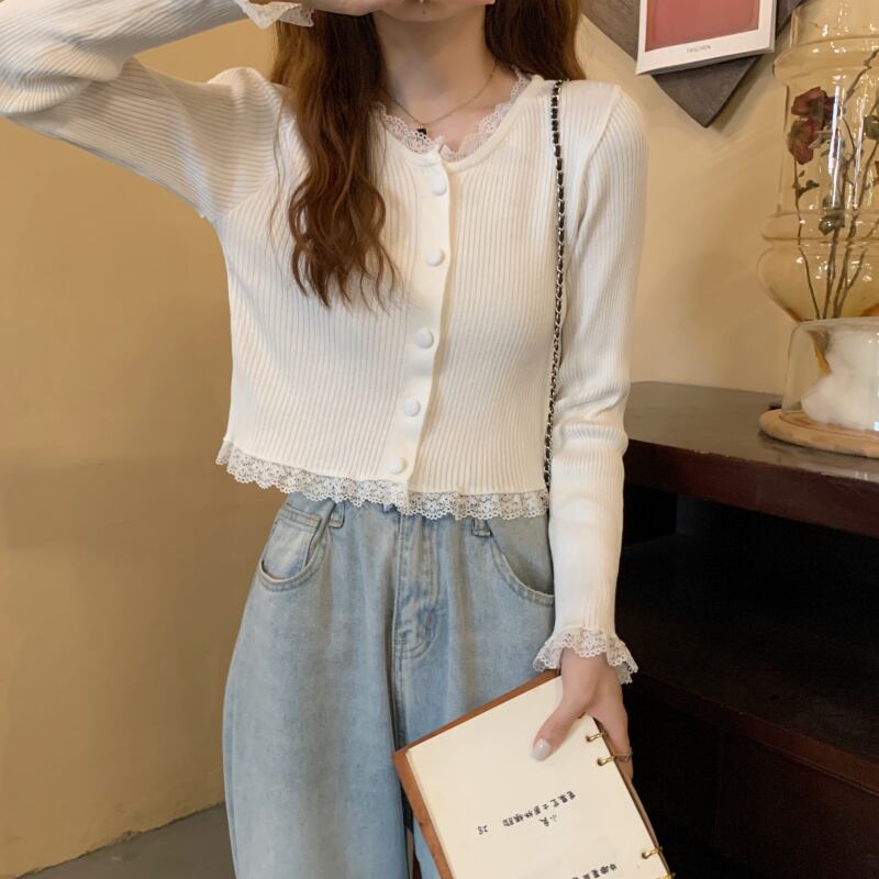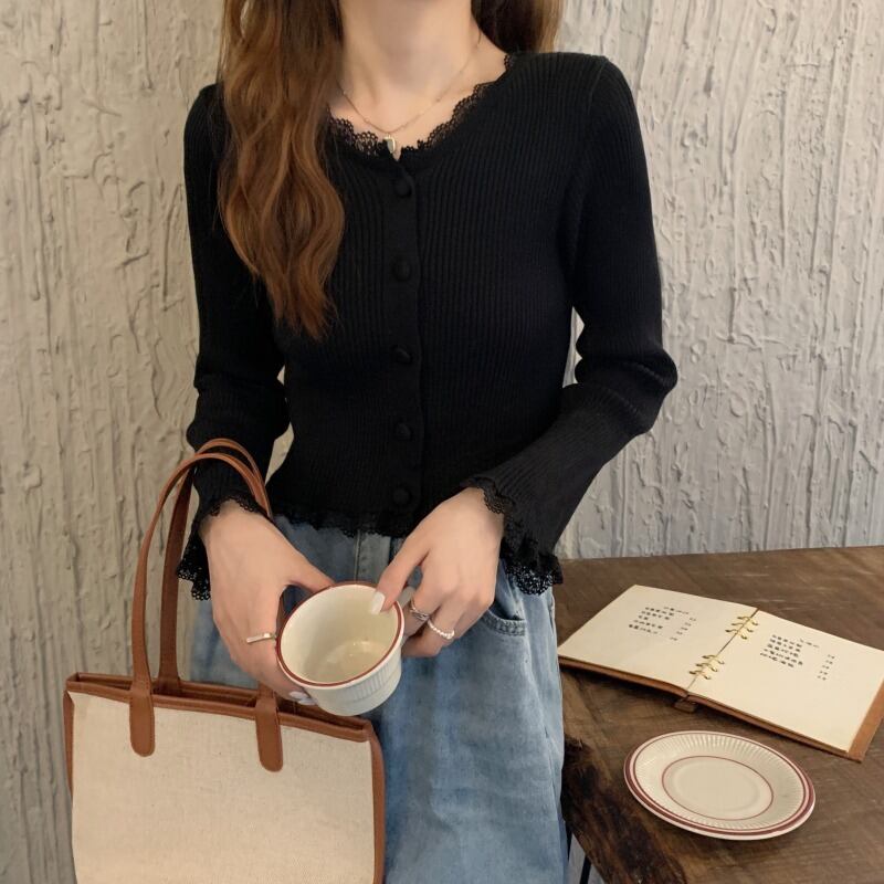 スプリング秋物レースニットカーディガンVネック韓国ファッションゆったりシャツ トップス ロング 春物 オータム スタイル 長袖 コーデ Marchs23206307228