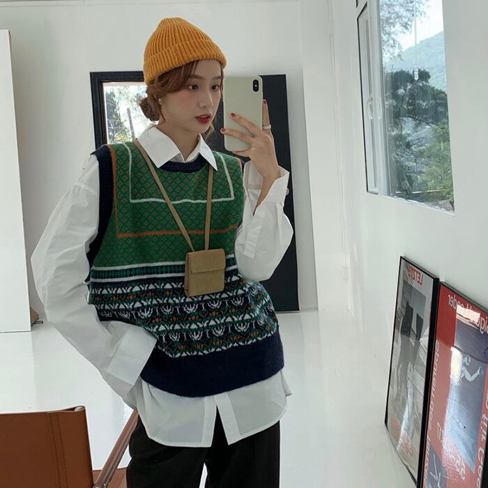 スタンダードカラーニットセーター スプリング秋物薄手プルオーバー ノースリーブ レトロ 春物 オータム コーデ marchs6723663520499