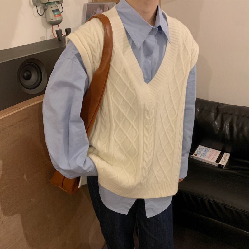 色:青いシャツ,ピンクのシャツ,ベージュのベスト,ピンクのベスト,黒のベスト