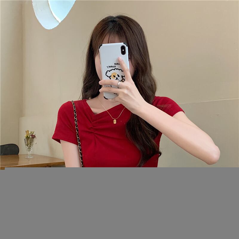 ホワイトショートTシャツハイウェストウェストトップス 夏服レディーススタイル コットン 夏物 ピュア ウエスト コーデ Marchs75867012691