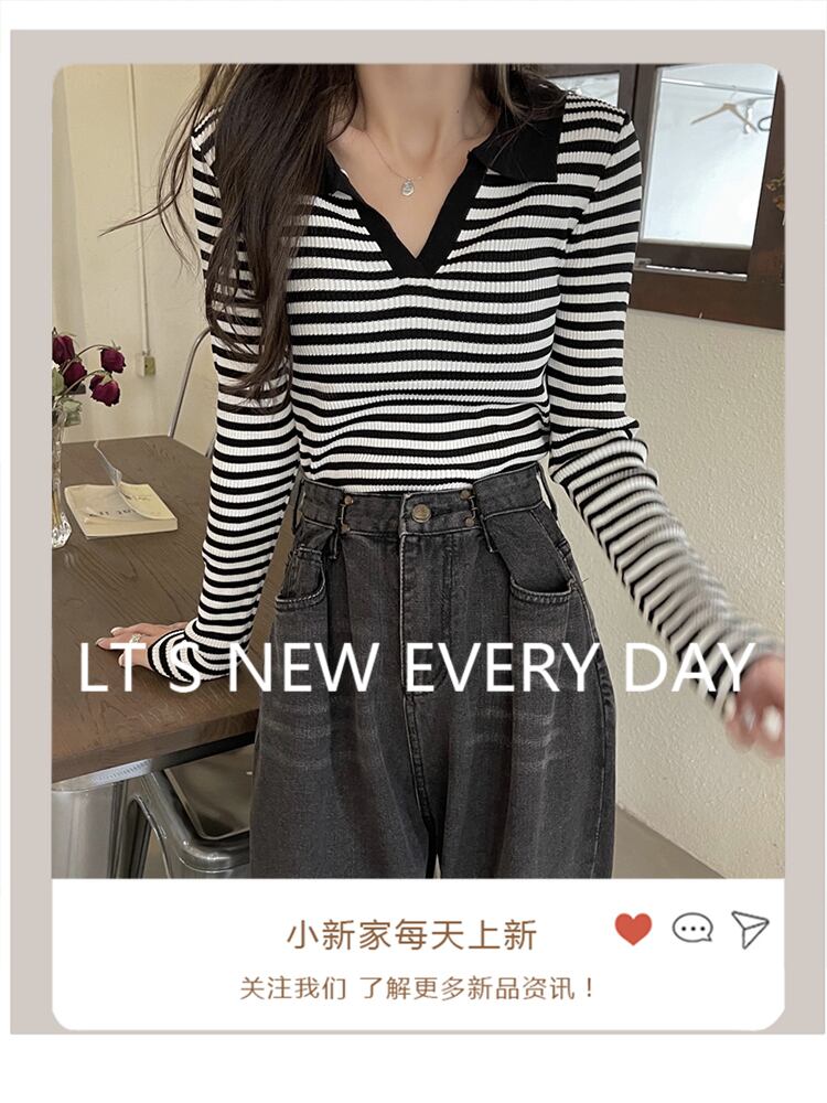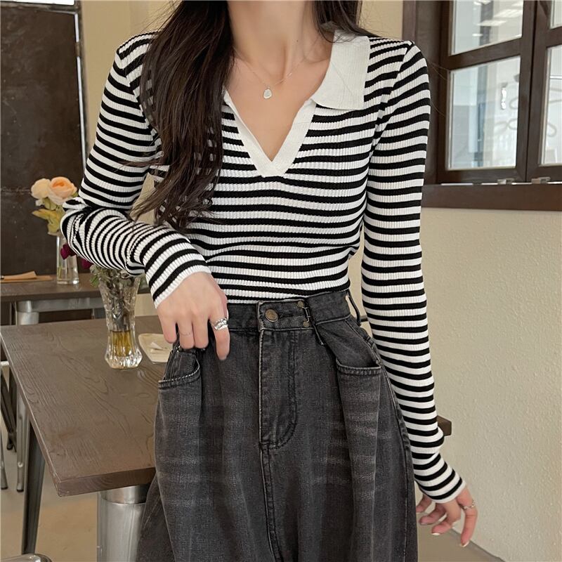 Tシャツシャツ レディース秋物スタイルスタンダードカラーストライプゆったりトップス NEW ロング レトロ オータム 長袖 コーデ Marchs46860565700