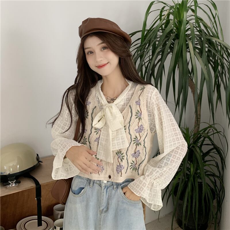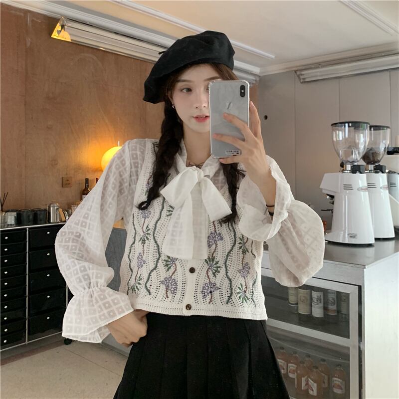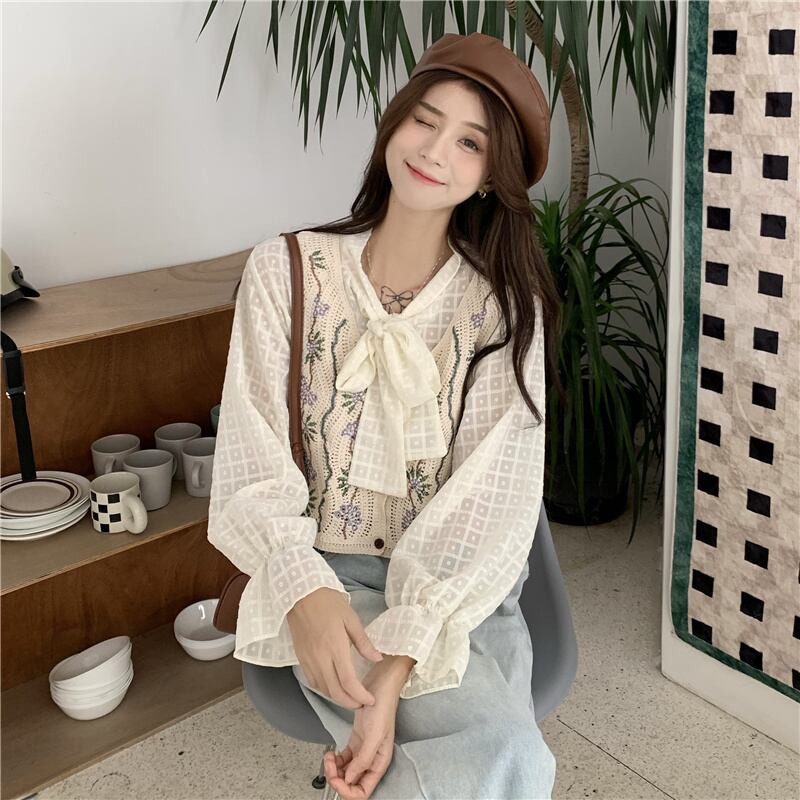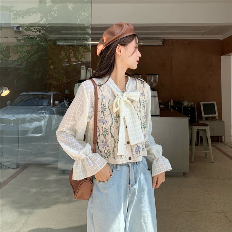 ニットスリーブシャツ レディーススプリング秋物 レース 春物 オータム レースアップ ウエスト コーデ Marchs99848488835