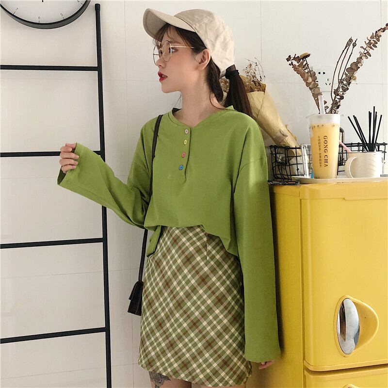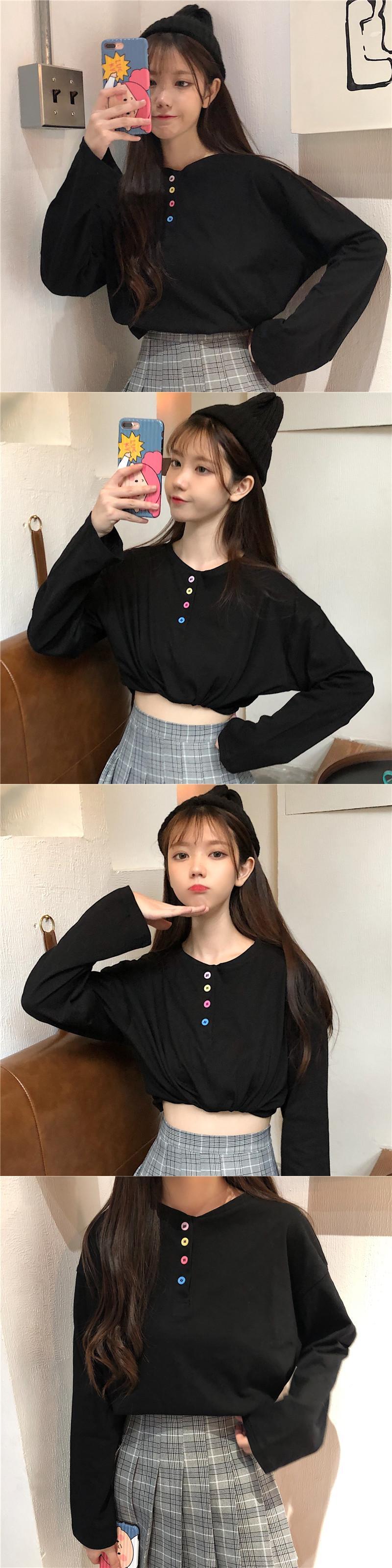 韓国ファッションスタイルカジュアルTシャツシャツ 秋物ルーズショートゆったりトップス ロング オータム 長袖 コーデ Marchs28975153118