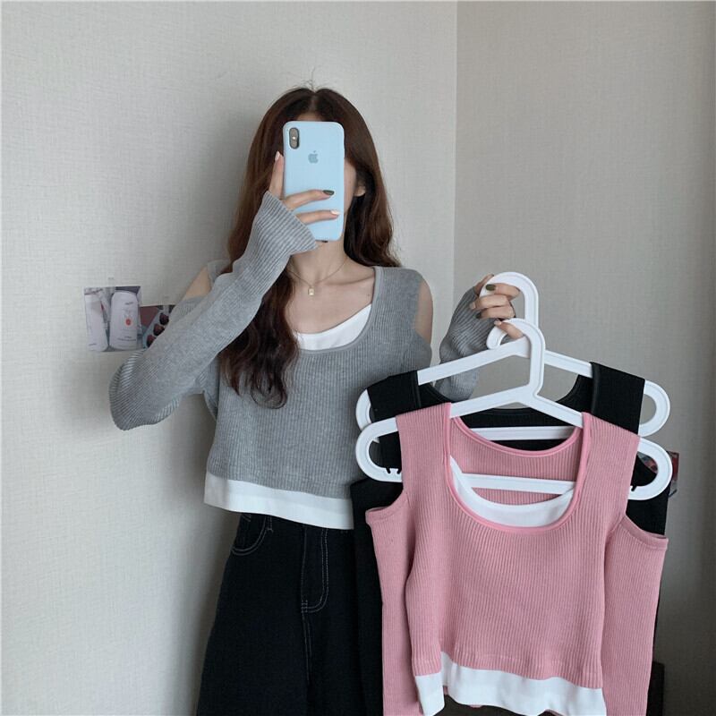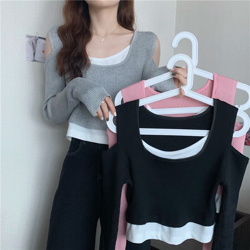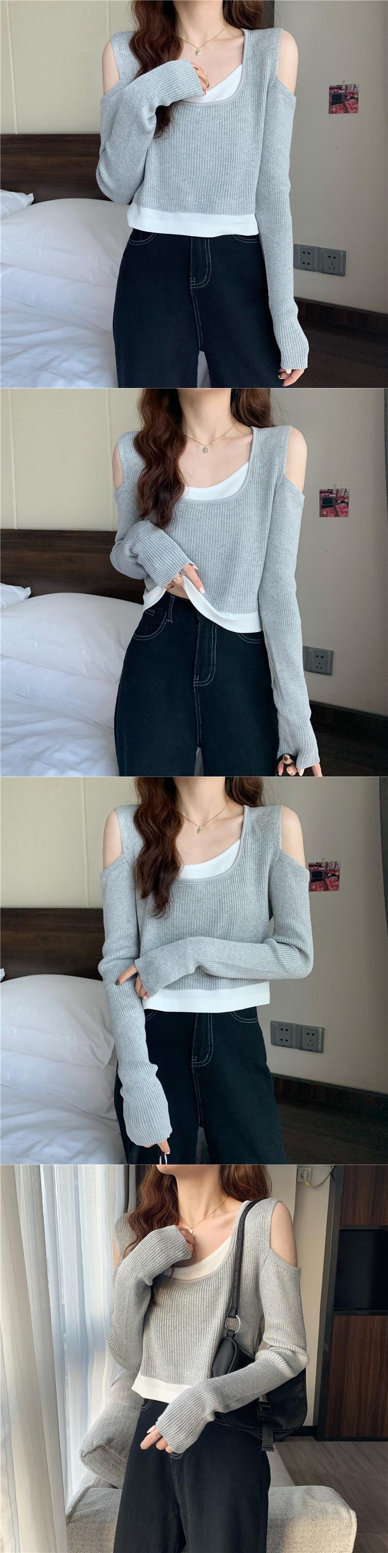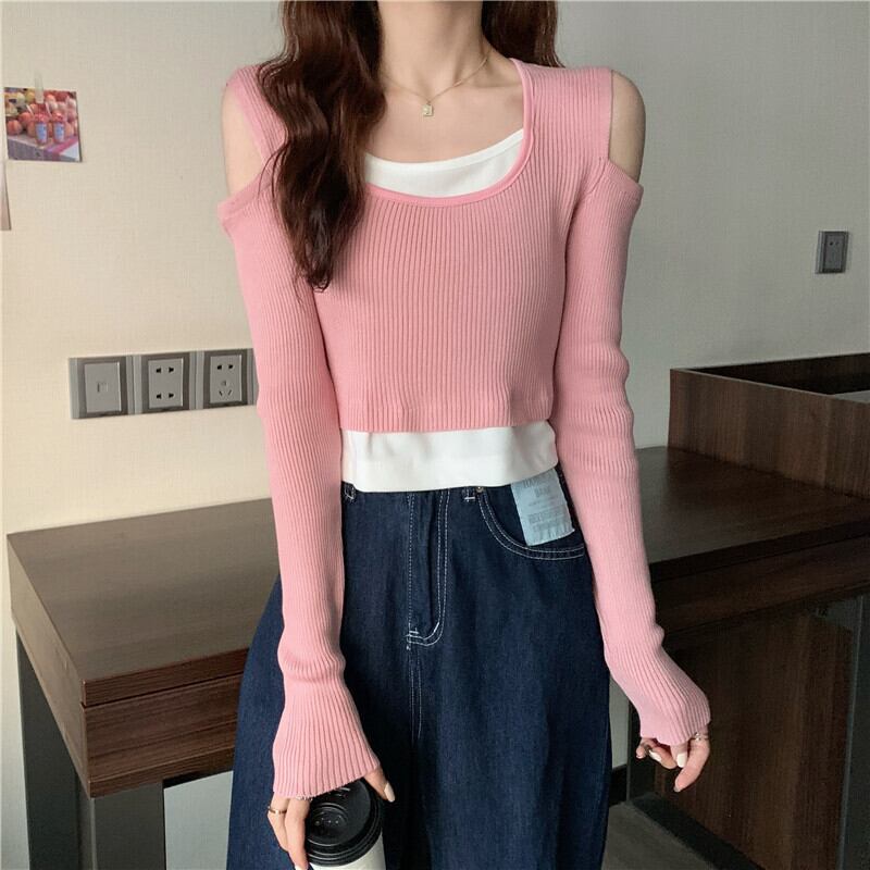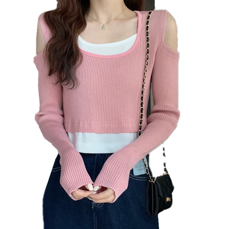 ゆったりセーター 秋物ショートトップス ロング オータム オフショルダー ステッチ 長袖 コーデ Marchs8675003083