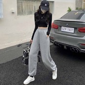 グレーパンツ スプリング秋物ハイウェストカジュアル 春物 オータム ウエスト コーデ marchs6731263855576