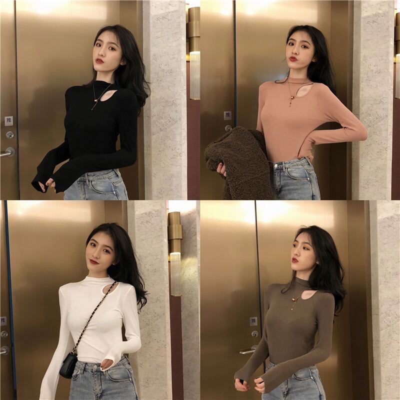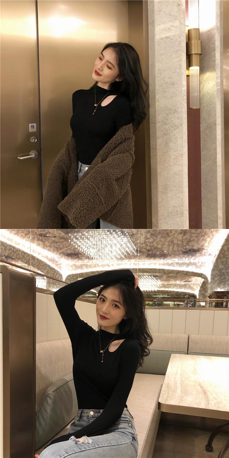 ブラックゆったりシャツ 秋物ニットトップス ロング オータム 長袖 コーデ Marchs66752460770