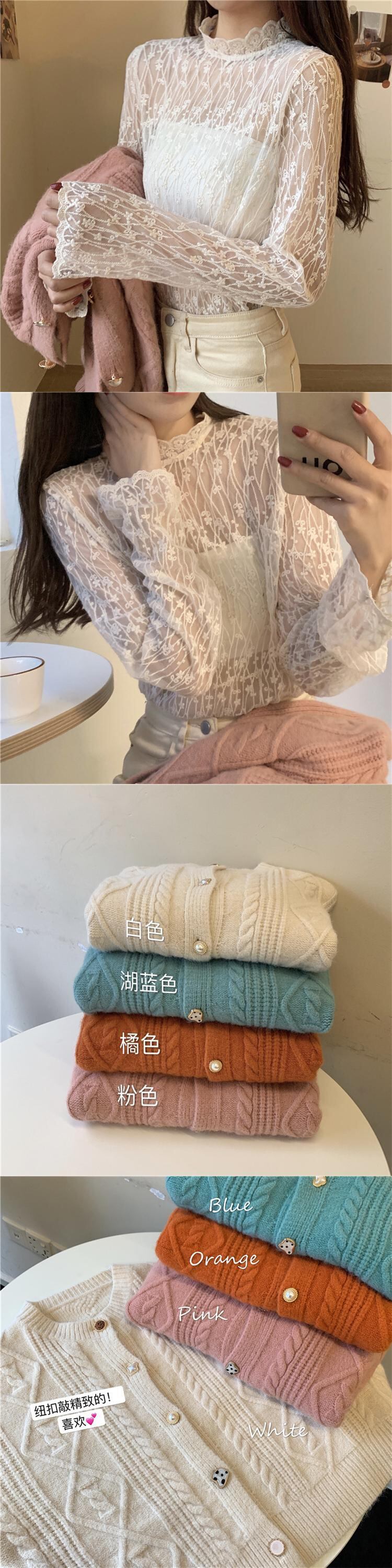 ブルーニットカーディガンセーター ジャケット レディーススプリング秋物ルーズカラーバックル 春物 オータム コーデ Marchs52299217849