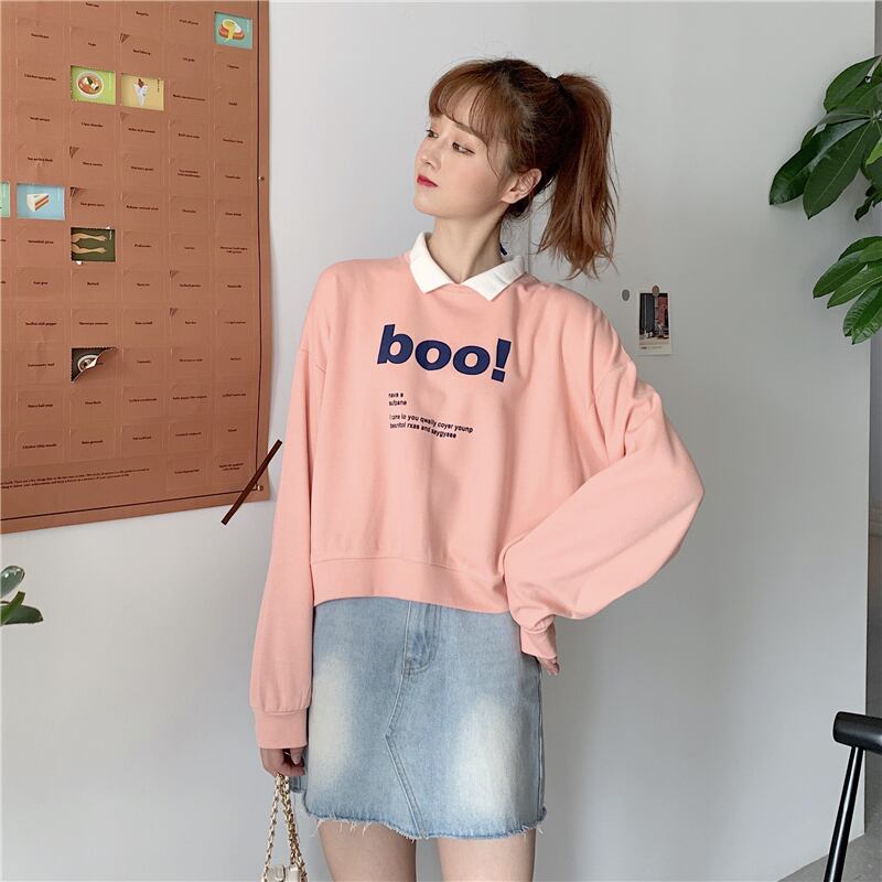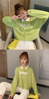 ショートセーター ルーズカラープリントスプリング秋物トップス ロング 春物 オータム 長袖 コーデ Marchs34639962371