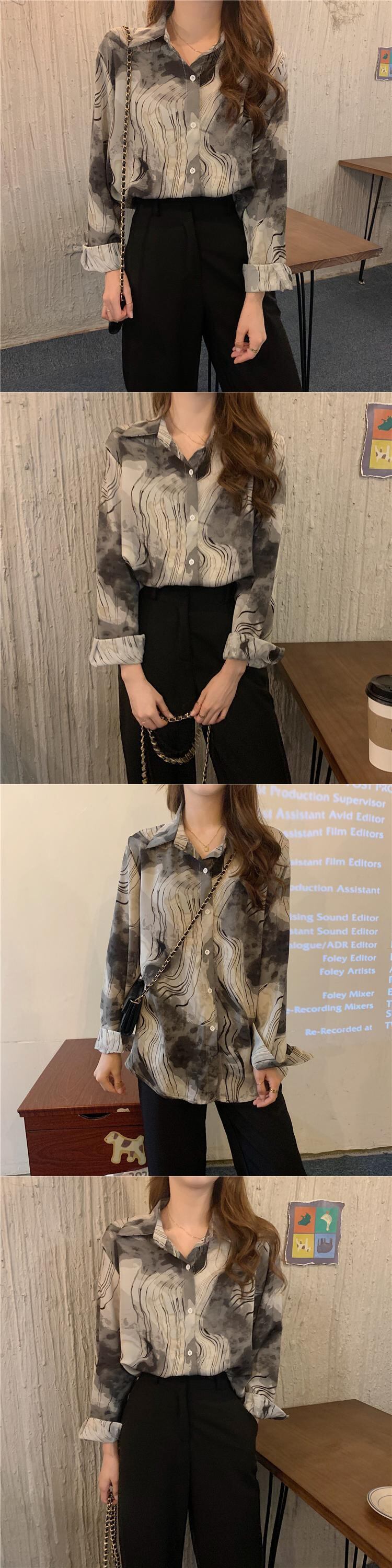 シャツ シフォントップス ジャケット 秋物 ロング オータム 長袖 コーデ Marchs47575817987
