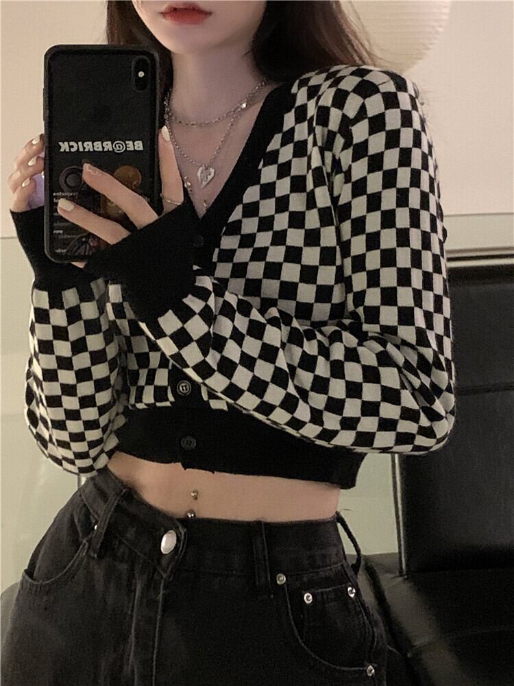 ショートVネックニットカーディガントップス スプリング秋物薄手 春物 オータム コーデ marchs674920605458