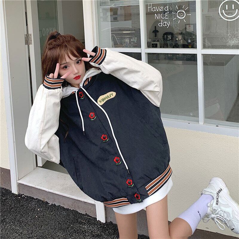 スプリング秋物韓国ファッションルーズカーディガンスタイル刺繍ジャケット レディース ロング 春物 オータム 長袖 コーデ marchs6725242264957