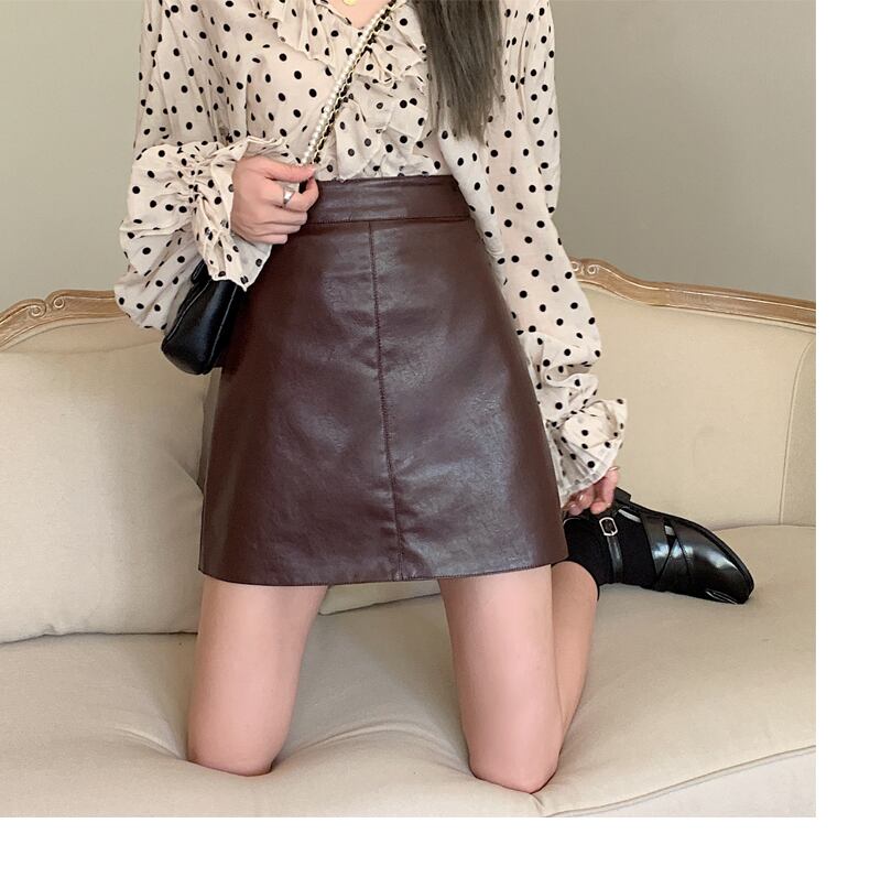 ブラウンレザースカート レディース薄手ハイウェストウェストAラインショート ウエスト コーデ Marchs30791853733