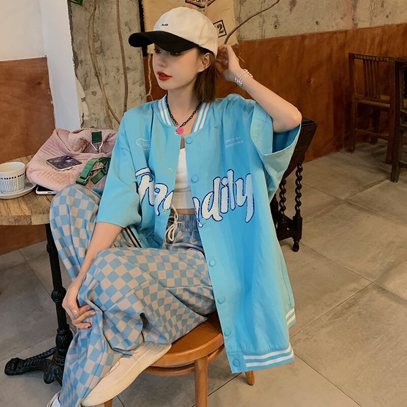 スプリング秋物ブルー薄手ルーズ レッド 刺繍 春物 オータム コーデ marchs6749536308779